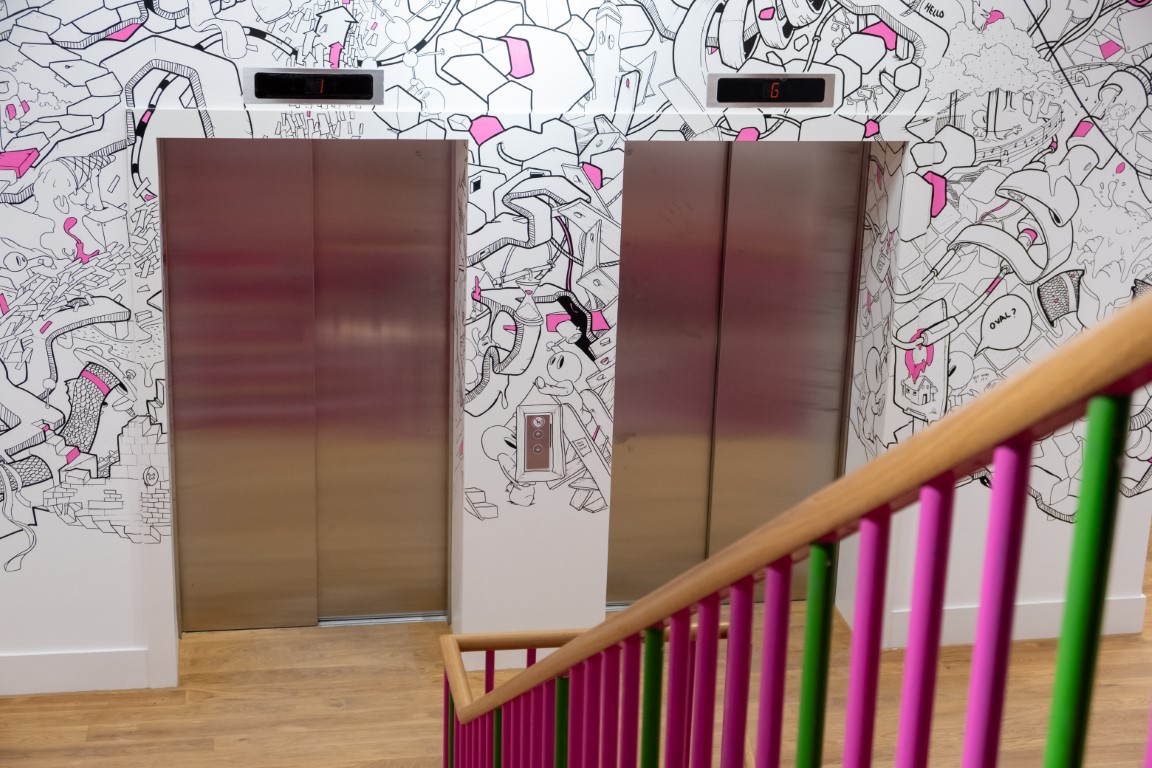 Also, there were extensive metal works which formed a main staircases then painted in multiple colours