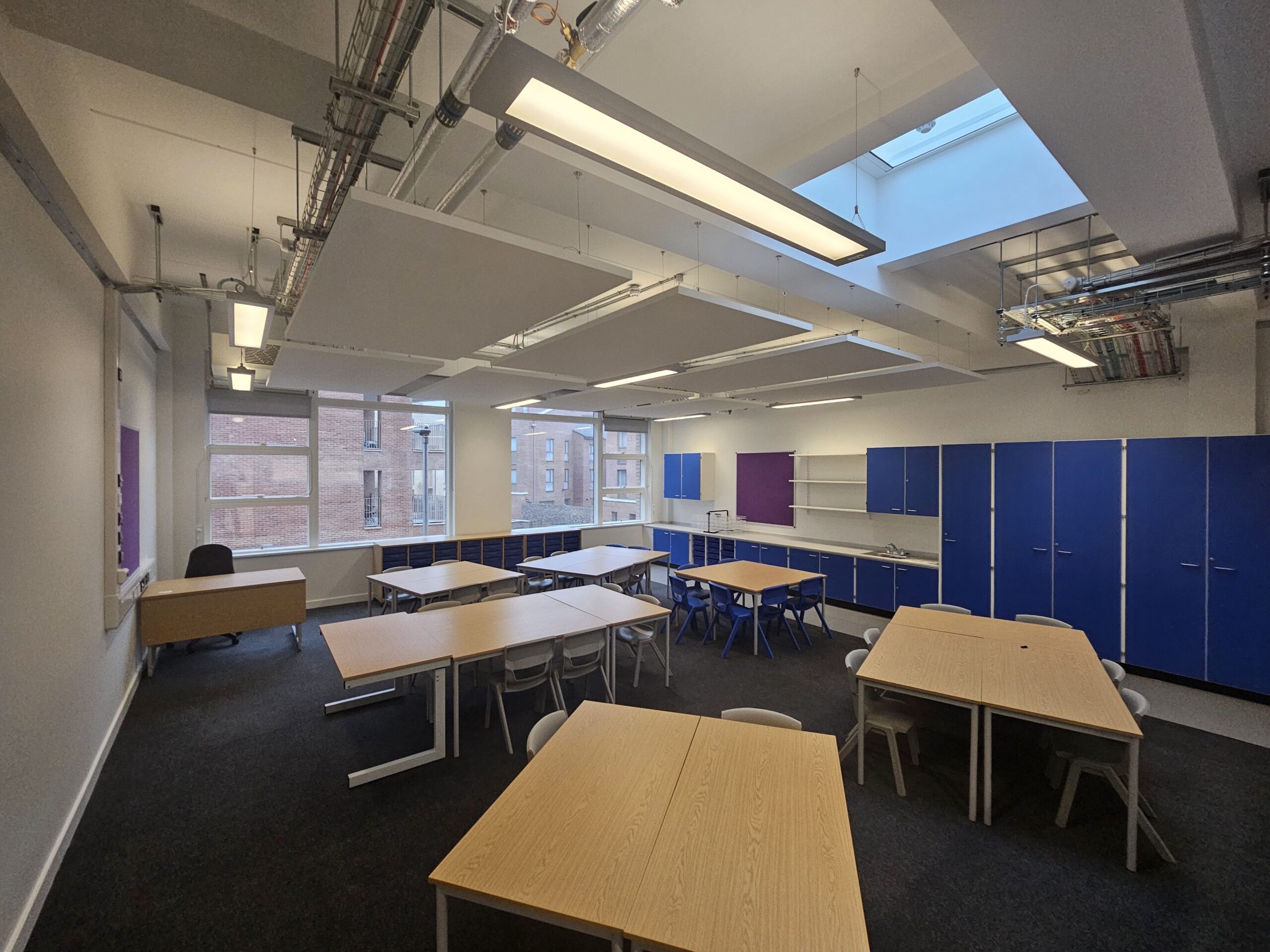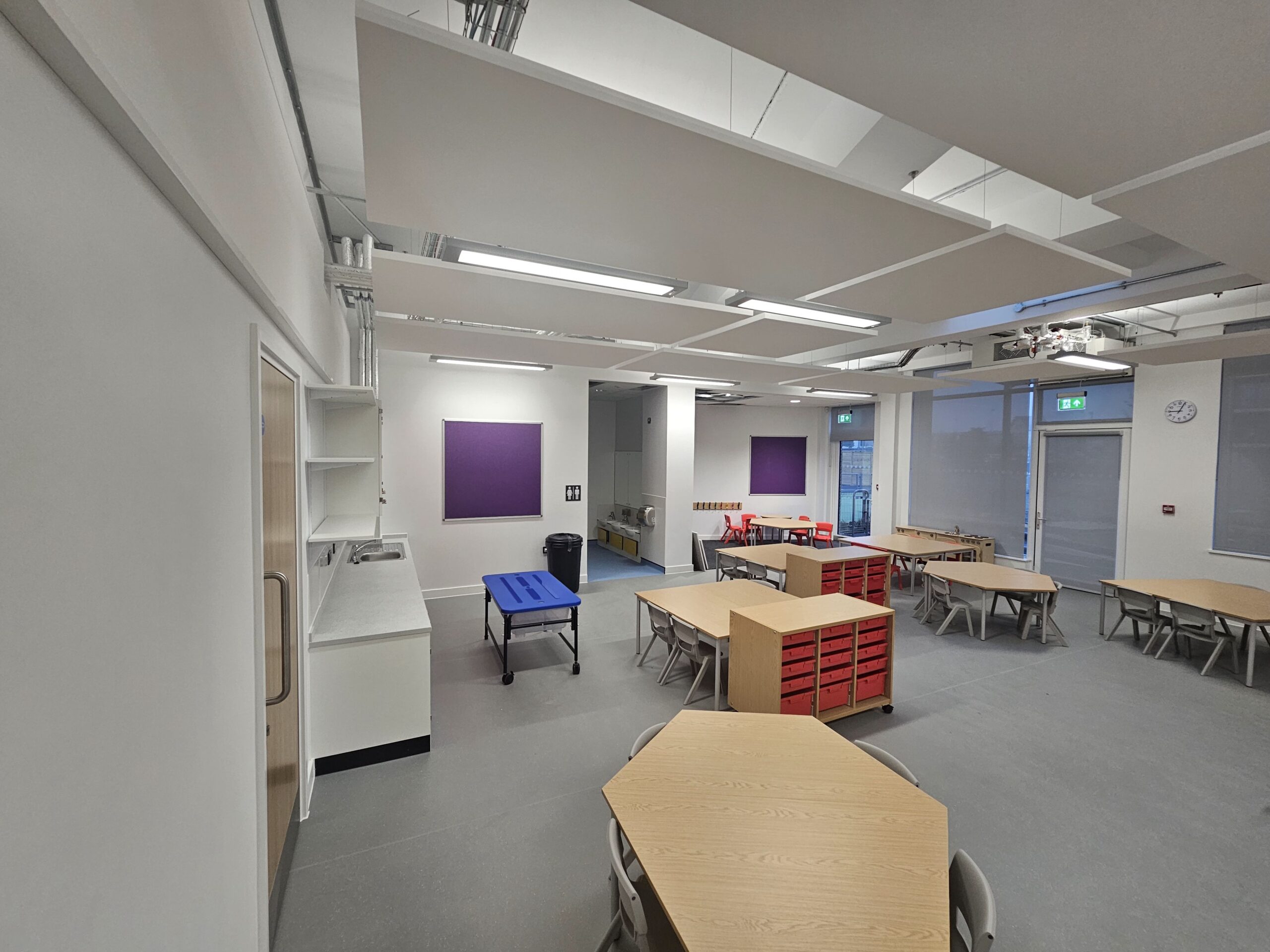 As part of a new build project, interior painting and decorating were completed across ground and first-floor classrooms, communal areas, and BOH spaces.